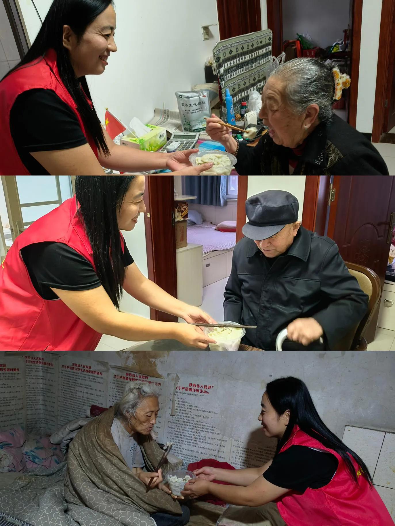 这份温暖还延伸到了社区孤寡和残疾老人的家中,由于他们行动不便,志愿者们将刚出锅的饺子精心打包,带着暖意挨家入户走访。志愿者们弯身将一碗碗热气腾腾的饺子递到老人们手中,陪老人唠家常、问冷暖;老人或坐在床边、或围在桌前,吃着饺子,脸上满是感动与幸福。这一碗碗饺子,不仅是美味的餐食,更是“金晖”项目对弱势群体的暖心关怀。