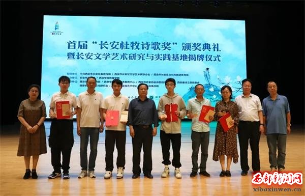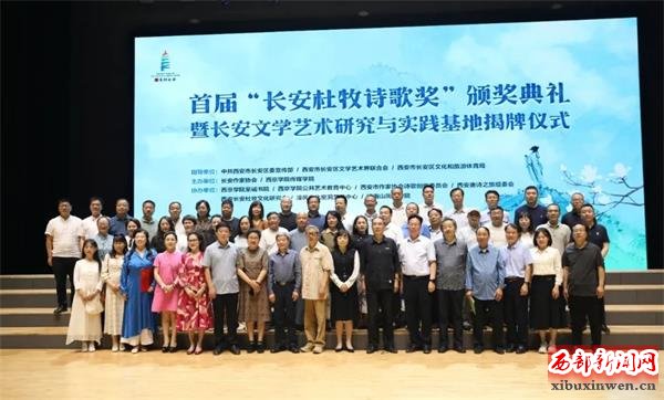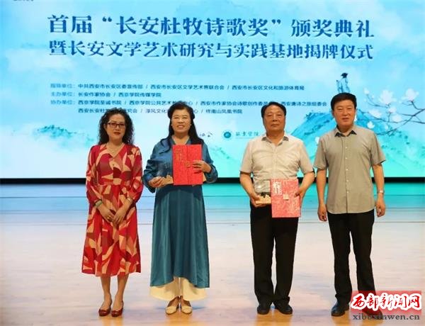 行进: 西安长安杜牧文化研究会参与发起并协办了首届“长安杜牧诗歌奖”活动。活动共征集到来自全国32个省市自治区和海外近500位诗人的3300多首诗作,以及40余位诗评人的50余篇诗歌评论,最终有14位诗人、作家的作品获奖。2024年2月,长安作家协会对外公布获奖名单,获奖作品刊登在第八期《长安文学》杂志。这次活动更进一步继承和发扬了杜牧的文学精神,长安作家协会与西京学院传媒学院在典礼现场,共同设立“长安文学艺术研究与实践基地”,为校内外文学与音乐的交流搭建起桥梁,加强校地融合,活跃文学艺术创作氛围。领奖那天下午,“长安杜牧诗歌奖”的获奖作者及部分嘉宾,还专程参观游览了杜公祠、兴教寺、司马村杜氏祖茔等地,并在我们司马村杜牧纪念馆作了交流,以文艺之力量宣传展示长安魅力。
