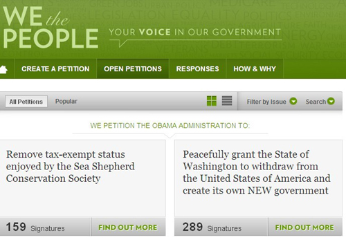 根据去年推出的“WethePeople”计划,白宫承诺在30天内对签名超过25000人的请愿书做出回应,任何13岁以上的美国公民都可以创建一份。