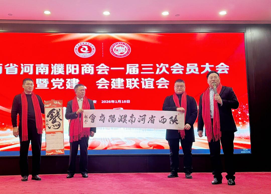 2026年1月18日,古城西安暖意融融,陕西省河南濮阳商会一届三次会员大会暨党建、会建联谊会在南方大酒店隆重举行。来自陕西省工商联、河南省濮阳市以及各区县政府部门代表、陕西省国际文化交流基金会、红旗出版社西北中心、中共西安市碑林区委统战部、碑林区文联、新城区工商联、民建新城区工委、民进碑林区委等领导,20多名书画家,39家兄弟商会代表,商会全体会员及濮阳籍乡贤、高校学子代表,齐聚一堂,以乡情为纽带,以发展为核心,共叙桑梓情谊,共商合作大计。同步举行党建赋能、授牌表彰、项目签约、公益拍卖等系列活动,为豫陕两地协同发展注入新动能。西部新闻网联合多家媒体重磅聚焦本次活动。