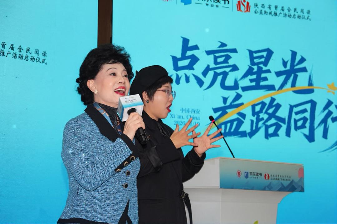 本次启动仪式特邀陕西省著名广播节目主持人文锦玲倾情主持。从业二十余载,不仅曾斩获全国及省市五十余项专业奖项的她,更是深耕公益助残领域的暖心使者——曾为盲人朋友声情并茂解说电影《隐形的翅膀》,更是帮助建立了六间特殊儿童音乐教室。当天,文锦玲以温润有力的主持风格串联全程,将“每一束星光都该遇见书香”的核心理念娓娓道来,让盲文的指尖星河、有声书的耳畔春风,都成为这场公益盛典的动人注脚。