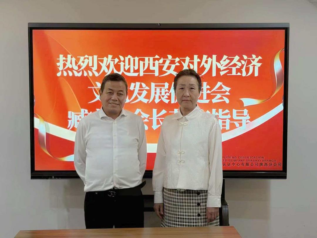 考察期间,臧宝珠会长与北京天一正认证中心有限公司陕西分公司董事长、总经理贺彦亨进行了深入务实的沟通洽谈。臧宝珠会长详细介绍了西安对外经济文化发展促进会的发展历程、平台职能、服务领域及未来规划,并对北京天一正认证有限公司陕西分公司加入西安对外经济文化发展促进会表示热烈欢迎与诚挚期待。