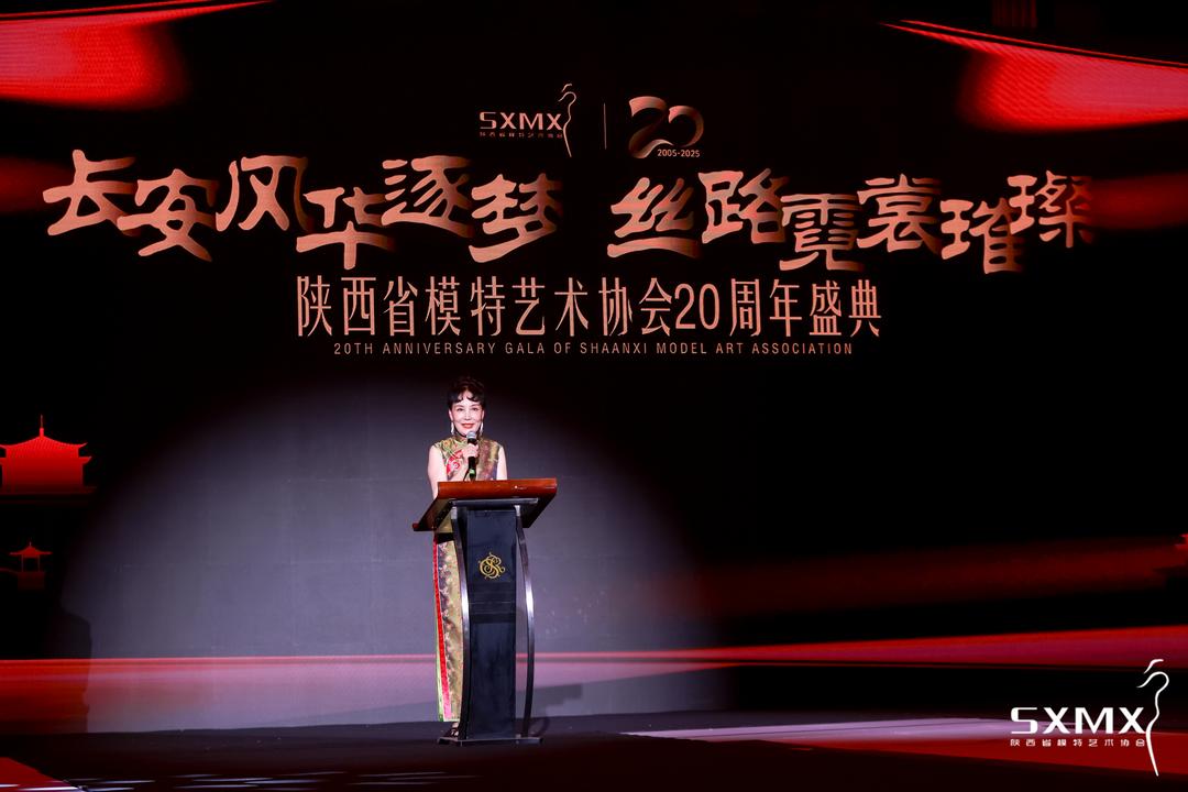 辉煌的背后,是二十年步履不停的坚守与耕耘。协会掌舵人——邱西燕会长在致辞中,数次哽咽,她深情回溯了协会从一粒种子成长为一棵参天大树的风雨历程。从最初的筚路蓝缕到如今的英才辈出,每一个难忘的瞬间,每一次艰难的突破,都凝聚着她与全体会员无尽的心血与热爱。她的讲述,是一部陕西模特艺术的鲜活发展史,字里行间洋溢着对事业的赤诚与对同仁的感激,深深感染了在场的每一位嘉宾。