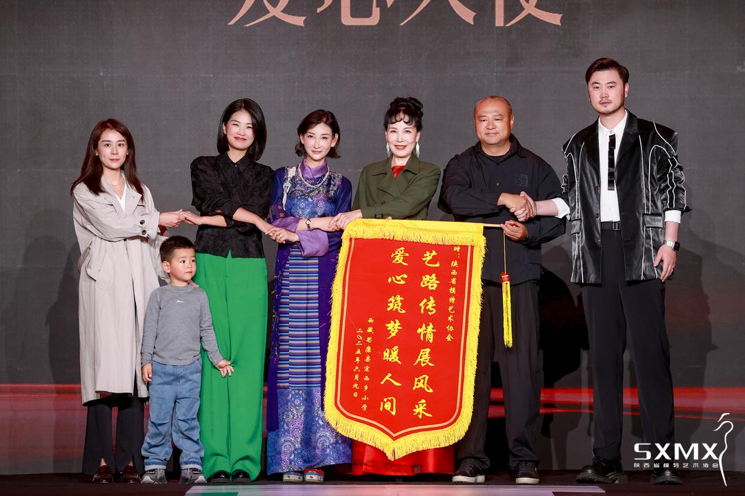 在感人的氛围中,公益行联合发起人刘英女士,携手历届爱心导师代表洛桑卓玛、齐健、延娅共同登台,将一面承载着千里之外深深谢意的锦旗——一面来自西藏昌都偏远山区学校的感恩锦旗,郑重地转赠给邱西燕会长。这面锦旗,不仅是一份荣誉,更是一座爱心的桥梁,它见证了陕西模特界乃至全国同仁的社会责任感与无私大爱,将整场庆典的温情氛围推向顶点。