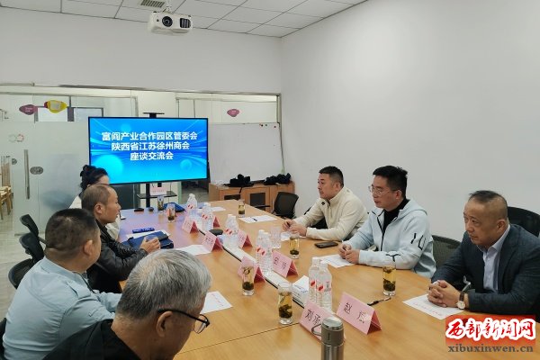 2025年10月24日,陕西省江苏徐州商会在会长王冠华的企业CCWorld林里荟会议室,与富阎产业合作园区管委会建设局局长米忠海一行举行了座谈交流会。双方就富阎产业合作园区(以下简称“富阎园区”)的投资环境、产业政策及未来合作方向进行了深入探讨。