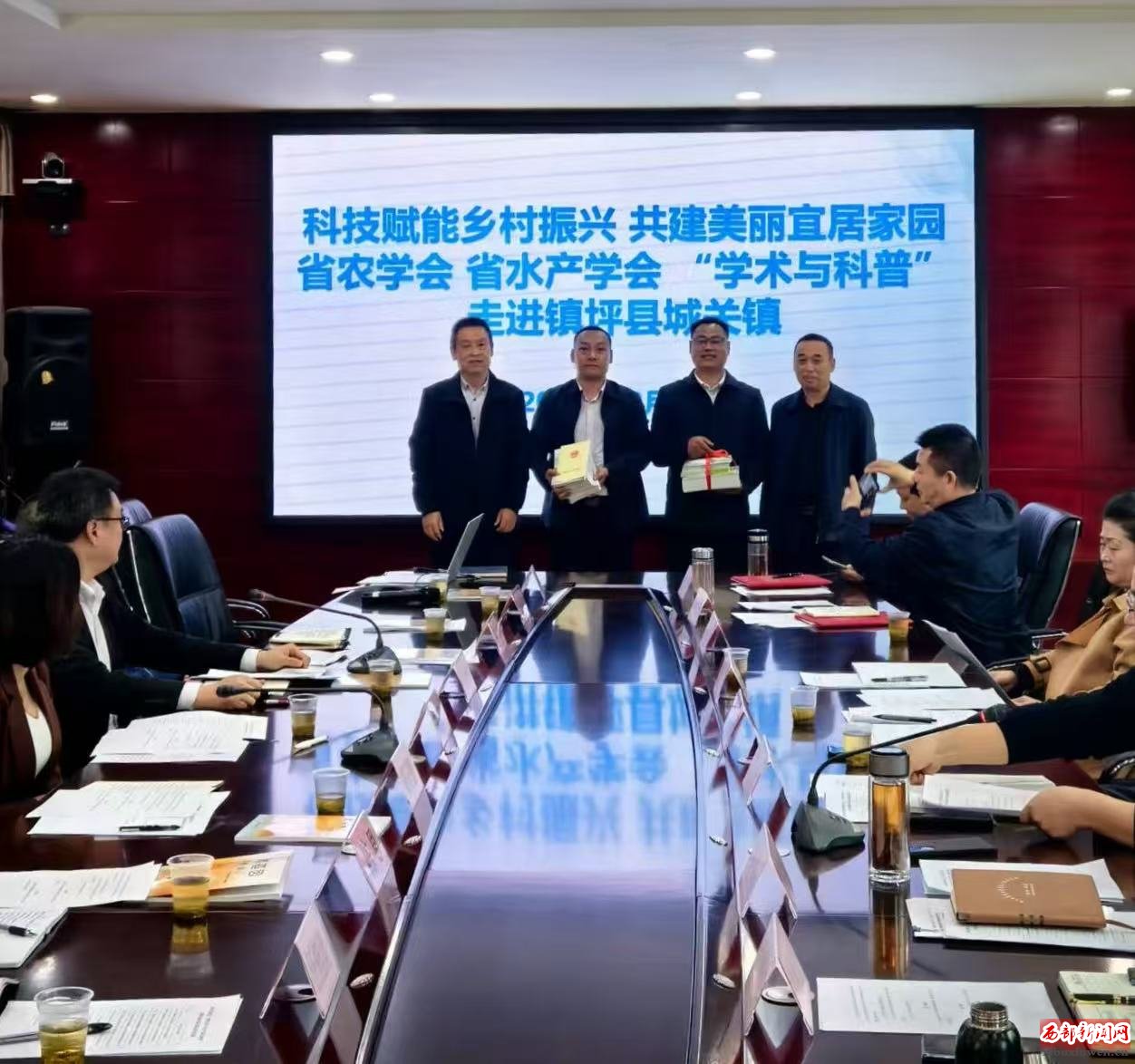省水产学会副秘书长徐长林、省农学会常务副秘书长史刘永赠送科普宣传资料。柯斧还就农业科普工作作了专题讲座。